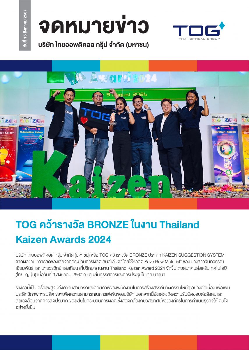 TOG คว้ารางวัล BRONZE ในงาน Thailand Kaizen Awards 2024
